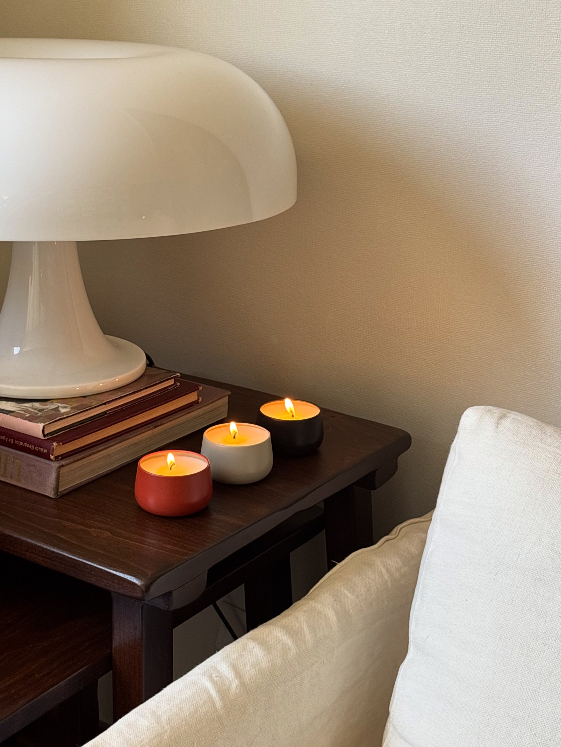Set de tres velas de cera de soja natural de 120 ml cada una.